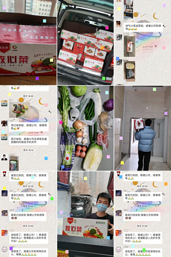 In order to reflect the company's corporate culture of "care", the administrative department of the company condolences to the employees of the Xi'an branch and sent them fresh vegetables. In this special period, there are not too many words, a simple greeting, a simple concern, What is left is not only fresh vegetables, but also a warm blessing and touching, which warms the company's "care" for all employees.