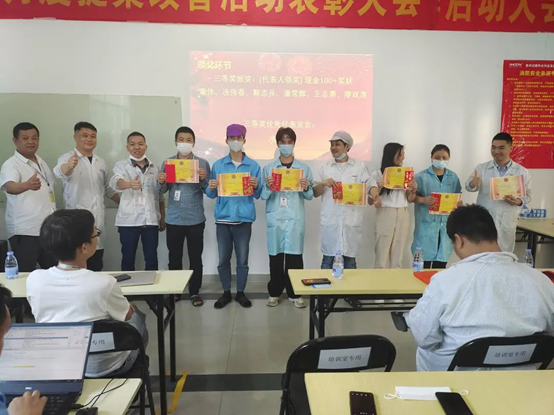 In April, the South China factory received a total of 168 proposals, which were reviewed by the review team of the General Manager's Office and finally awarded 1 first prize, 3 second prizes, and 6 third prizes. The personnel were presented with honorary certificates, bonuses and group photos.