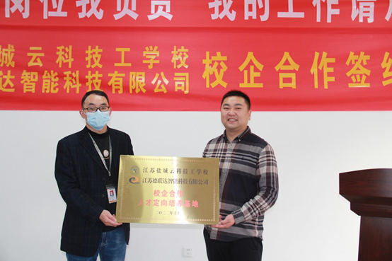In order to implement the talent training model of engineering integration, the two sides agreed that starting from the fall semester of 2022, the enterprise will set up the "title class of Jiangsu Date-link Intelligent Technology Co. The school and the enterprise will jointly develop the talent training program and jointly prepare the curriculum plan, and the enterprise will select outstanding technicians to participate in the school's curriculum teaching and give priority to the qualified graduates of the title class. The school assigns qualified teachers to lead the interns, participate in the production practice and management of the enterprises, and take the enterprises as the first choice of employment for the graduates, so as to guarantee the development of the enterprises in terms of talents.