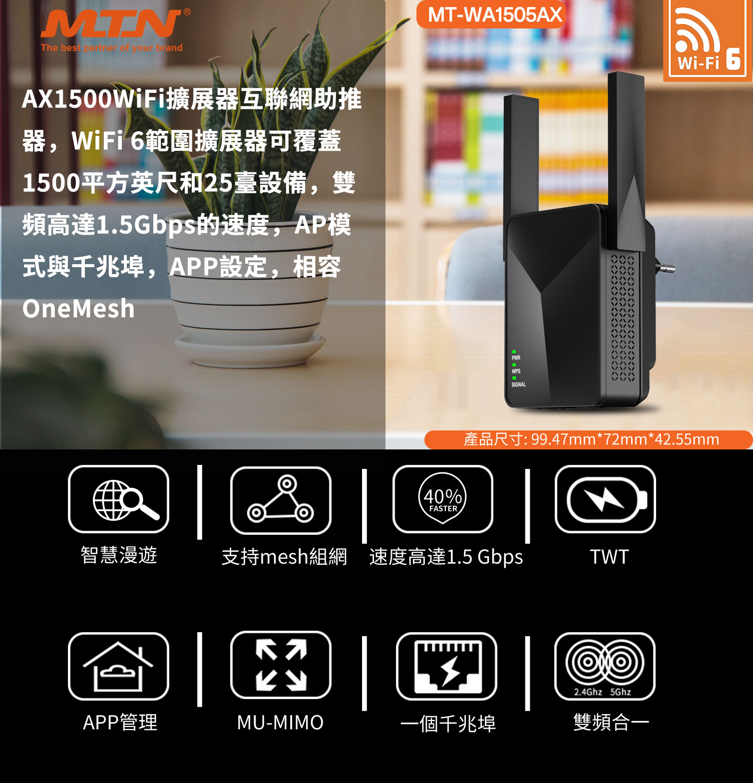 WiFi 6 1500 megabit dual-band wireless repeater